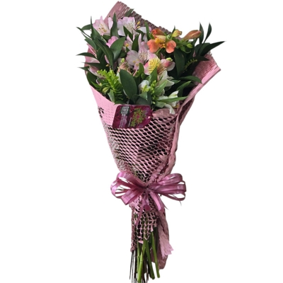 Buquê de astromelias com papel coméia, uma ótima opção para o Dia das Mulheres ou demais ocasiões